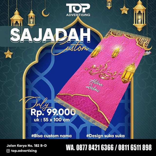 Untuk yang mau Custom Sajadah untuk Shalat kita bisa yaa.. π